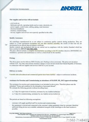 - ANDRITZ SEPARAČNÍ ODSTŘEDIVKA A 9-2 NOVINKA