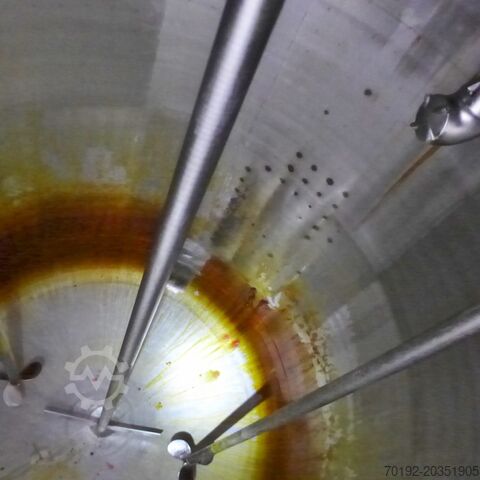 Poznámky: 1 promáčklina ve vnitřní nádrži (přetlak nefunkčního topného pláště; viz fotky); Izolační plášť s menšími promáčklinami a místy uvolněnými deskami; Nádrž má uvnitř přilnavé zbytky; Zařízení pro vážicí buňky pod nohami (3 volné vážicí buňky jsou součástí dodávky; při udávání celkové výšky nebyly zahrnuty)