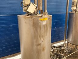 Instalace na míchání přírodních barviv složená ze 2 nerezových nádrží s míchadlem
